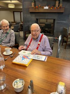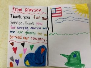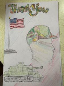 Towner Crest Veteran opening his East Veterans day thank you cards